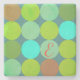 Lime Green Teal Turquoise & Rust Circles Monogram Stone Coaster