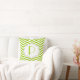 Lime green, white chevron zigzag pattern throw/toss accent decorative pillow with monogram in a grey frame.