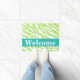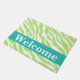 Welcome visitors to your home with this stylish and sophisticated lime green and white zebra skin pattern door mat. This door mat is customized with the word Welcome that you can change to another word or name. A turquoise teal blue strip gives an area for personalization and an additional pop of colour. Enjoy this popular and contemporary design that will add a trendy home decorative accent. This design is available in several colour combinations in this store.