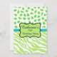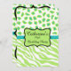 This invitation is great to celebrate 70! Customize this stylish sophisticated invitation for a 70th birthday party or other event. The design features lime green and white zebra stripes and leopard or cheetah skins combined for a trendy and modern design. A lime green emblem outlined in black on a turquoise teal blue bar and creates a personalization area, with the birthday girl's name and "70th Birthday Party" words that can be customized to other words. The back of the invitation includes fields for all of your information for your party. You can easily change and delete fields as needed. Colours are lime green, white, turquoise teal blue and black. Wild animal skins for graphic design is a hot art and design trend, and is extremely popular from fashion to home decor. This sophisticated zebra and leopard print collection is one of several colour combinations available for your choice of invitations and coordinates with other products for a stylish party.