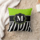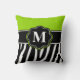 Lime Green Zebra Print Monogram Pillow