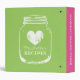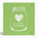 Trendy bridal shower cookbook recipe binder for bride to be. Personalized lime green, pink and white vintage mason jar kitchen recipe binder book. Custom cookbook with heart and personalizable color plus name. Cute personalized baking / cooking gift idea for soon to be married women. Rustic country chic wedding design with faded love symbol. Elegant typography for custom name. Cute gift idea for dinner party before marriage. Stylish organizer album for your favorite recipes. Cheerful colors.