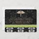 Add your photo or favourite picture to these elegant and formal black and white floral damask vet school graduation announcements and veterinary graduation invitations with a gold single snake caduceus and printed bright lime green stitched ribbon look design for the graduating veterinarian. Customize it to say whatever you want on the back and front of these dentistry graduate graduation announcements and invitations. Artwork © Chrissy H. Studios, LLC. All rights Reserved.