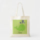 If you love whales you'll love this cute and cheery whale design tote bag featuring a lime green whale with a navy blue and white striped water spout on a patterned background of green and white with an area you can personalize with a name!