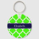 Lime White Moroccan #5 Navy Blue Name Monogram Keychain