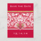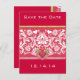 Save the Date Lime & Raspberry Winged Hearts and White Damask Shown Deep Rich Raspberry Pink But You Choose Card and Font Colours