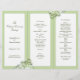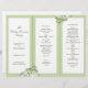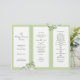 Tri-fold hydrangea wedding program template. Add your own text to the templates provided on this letterhead size (8.5 by 11 inch) linen paper with light green hydrangea flowers and panel borders. Will have to be folded into thirds accordion style after purchase. ***Choose any paper type. Reverse will have no colour or images.