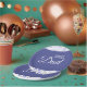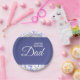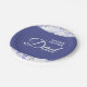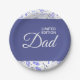 This "LIMITED EDITION Dad" paper plate is a great party supply addition to a Father's Day event or Dad's Birthday event. Featuring the word "Dad" in a large script, with "LIMITED EDITION" stacked in a sans serif font hovering above it on a dark periwinkle background. A fun border running along top and bottom contains loose illustrations of ties, sporting equipment, tools, tech, moustaches, etc.