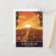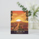 Lincoln postcard. Sunset over the city in Nebraska. Illustrated travel postcard in vibrant colours.