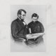 Lincoln Postcard - reading with son Tad, 1864