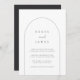 A beautiful minimalist typography based wedding invitation featuring your names in classic lettering, joined with modern handwritten script accent lettering, beneath a thin line arch illustration. Personalize with your wedding details beneath. Our Ash colorway makes a classic statement with soft black lettering on a crisp white background.
