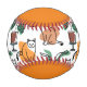 Line art drawing cats and flowers baseball