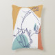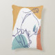 line art drawing poster of woman drinking coffee accent pillow