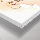A line art illustration of a woman's face in bronze, gold and streaks of gold in the background colours. Surrounding the face are a couple of hand-drawn lines, wisps and tendrils in a bronzy gold colour. The watercolor background is in soft pink, peach. Add this radiating vibrance to the cozy and aesthetic mood of your home.
