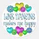 Share your love for line dancing and the happiness it gives you with this colourful design with hearts, flowers and the words - Line Dancing makes me happy. Nice gift for a dancer.