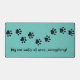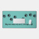 Line of Black Paw Prints Design Desk Mat with customizable background colour and text.