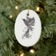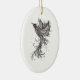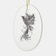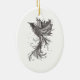 an abstract lineart design of a rising phoenix on a decorative ceramic ornament