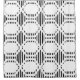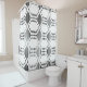 This shower curtain has a mid-century modern design of black vertical lines with hexagons strung horizontally on a field of white.