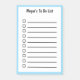 Personalize this light blue outlined to do list lined sticky notes pad by changing the name template. There are 10 lines with checkboxes to list your priorities of whatever needs to get done today. Or give as an office gift. Also, you can customize the type of list it is by changing the "to do" to something else like shopping.
