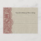 These fun recipe cards feature images of linen and marsala (sort of a dark rose mauve) lace (ALL ELEMENTS ARE PRINTED EFFECTS--THERE IS NO ACTUAL LINEN, ETC). Personalize with a name or any text you choose. Great for a bride, newlywed, or anyone whose recipe file could use some sprucing up. NOTE THAT the name is shown in black, but you can change that to any colour text. Great for cooking parties or bridal showers.