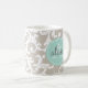 Linen and Mint Monogrammed Damask Print Coffee Mug