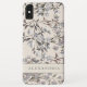 Elegant floral phone case features a linen beige and grey floral wallpaper pattern with personalized name. The elegant floral pattern features shades of smoky grey and light neutral pastel accents.