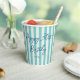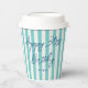Personalize your event with custom name paper cups — perfect for enjoying coffee or a cool soda! This chic design features trendy script typography, and a simple striped pattern with a faux linen look. Customize the template with a name and age — perfect for milestone birthdays including 18th, 21st, 30th, 40th, 50th, 60th, 70th, 80th, 90th, and 100th! This elegant design blends timeless style with a modern twist, and the text can easily be adjusted for anniversaries, holidays, office parties, or a special occasion. Printed colours: natural mint green, blue-green, dark blue, navy, and white.