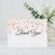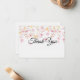 This flat thank you note card is shown in the white linen paper with a lovely pink multi floral print. Envelopes included