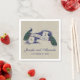 Romantic Linen Peacock Rustic Wedding Paper Napkins. BlissfulWedding © at Zazzle. Two beautiful peacocks on vintage banner and text in a dark blue font all on a beige linen background (printed photo effect) with monogram initials, bride and groom first names and wedding date, create a unique, stylish napkins for the wedding reception or wedding shower. Other colours available.