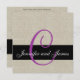 Beige Linen Rustic Wedding Invitation with Purple Monogram design by Elke Clarke ©2009. Customize with your monogram names and wedding colours. Add all your wedding information on the back of the card using Zazzle's easy to use menu prompts. Linen background is a printed photo effect.