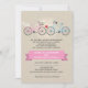 Linen Style Pink Bicycle Wedding Invitation