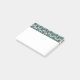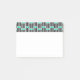 This Post-It notepad has a mid-century modern design made of five black lines and two turquoise rectangles repeated across the design.