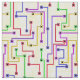 Colourful nodes connected by straight lines to make an interesting, interconnected network.