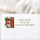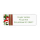 These return address labels have a mid-century modern Christmas design of lines and rectangles in retro shades of red and green.