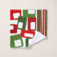 This towel set has a mid-century modern Christmas design of lines and rectangles in retro shades of red and green.