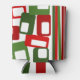 This can cooler has a mid-century modern Christmas design of lines and rectangles in retro shades of red and green.