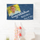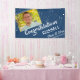 Welcome your graduation party guests and honour the graduate with this editable blue and white banner sign featuring the graduate's photo. The design has simple, clean white lines against an editable blue background and muted stars with a brush script title "Congratulations NAME" and graduation year in editable white. You can change the background and text colours to coordinate with your photo, school colours or party theme colours.
