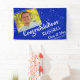 Welcome your graduation party guests and honour the graduate with this editable royal blue and white banner sign featuring the graduate's photo. The design has simple, clean white lines against an editable royal blue background and muted stars with a brush script title "Congratulations NAME" and graduation year in editable white. You can change the background and text colours to coordinate with your photo, school colours or party theme colours.