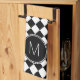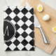 Cette serviette de cuisine d'inspiration rétro dispose d'un motif en diagonale noir et blanc à damiers. Personnalisez le monogramme noir et blanc correspondant avec votre choix d'origine. Fait un grand cadeau pour le ménage.