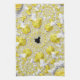 Ce produit présente un graphique numérique fractal abstrait en or et blanc avec Mandelbrot noir au milieu.