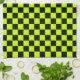 A vibrant checkerboard pattern with alternating neon yellow and black squares creates a striking geometric design, conveying a bold and energetic tone.