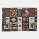 Cette serviette de cuisine présente une esthétique de mosaïque d'art populaire, disposée dans une grille de blocs carrés qui mêlent les éléments appliqués et piqués. Les motifs d'Appliquéd comprennent un citrouille orange audacieux, une corneille noire, des coeurs rouges, des poulets et des fleurs stylisées, tandis que les blocs de pièces présentent des motifs de courtepointe géométriques traditionnels tels que des étoiles, des diamants et des croix. L'utilisation de rouge profond, de crèmes et de blues/noirs foncés, accentués de tissus à motifs comme les pois, les fleurs et les solides texturés, crée un style chaleureux et rustique. Parfait pour la décoration de la ferme, la vie de campagne, l'artisanat primitif et les courtepointes de saison, ce design incarne le charme de la courtepointe traditionnelle avec une atmosphère douillette et artisanale.