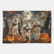 Libérez l'esprit éffrayant avec ce design d'Halloween étrange avec une meute de chiens sous un ciel sombre et clair de lune, entourée de chauves-souris volantes et de citrouilles brillants. Parfait pour ceux qui aiment une touche de plaisir effrayant avec leurs amis en fureur !