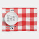Commande de dispositif électronique Alexa pour dîner de cuisine avec réglage argenterie et plaque ronde blanche sur blanc et rouge buffle plaid arrière - plan