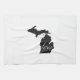 Montrez un certain amour de Michigander tout en faisant cuire pour aimé et des amis dans la cuisine avec cette serviette du Michigan d'amour comportant la forme de silhouette de l'état de Wolverine complété d'arrière - plan noir faisant le lettrage blanc du mot aimer se tiennent vraiment.