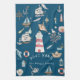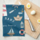 Linge De Cuisine Aquarelle Eléments marins Bleu