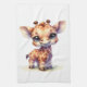 Une jolie petite girafe de style caricature aux grands yeux expressifs et au sourire joyeux. Il se dresse dans une posture ludique, l'ambiance générale est gaie et capricieuse, parfaite pour un cadeau d'enfant.