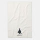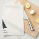 Serviette de cuisine moderne de Noël avec un design intemporel avec un arbre de Noël avec un motif bleu marine et vert pâle et le salut "Joyeux Noël".