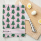 Serviette de cuisine personnalisée avec motif joli, lunatique, arbre de noël sans couture avec rubans roses.