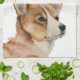 C'est une peinture d'aquarelle d'un chien de corgi de gallois. Son visage tourne légèrement vers notre direction.